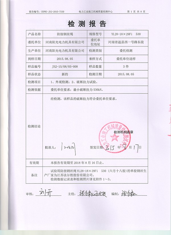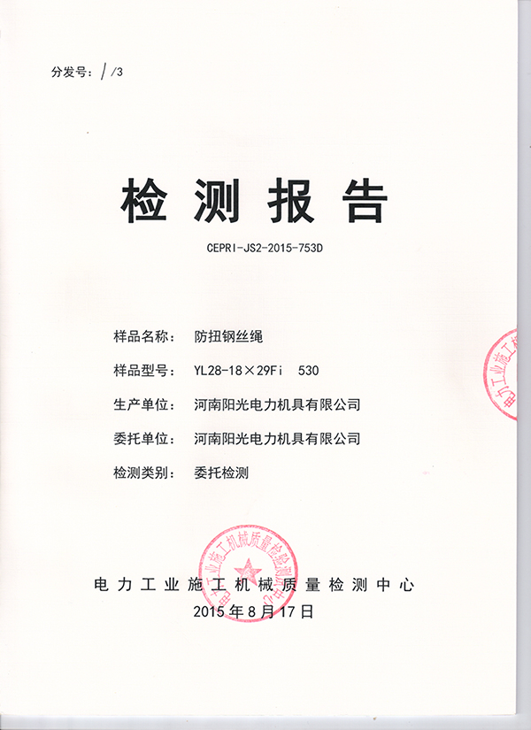 恭祝我公司YL28-18×29Fi 530通過電力工業施工機械質量檢測中心認證